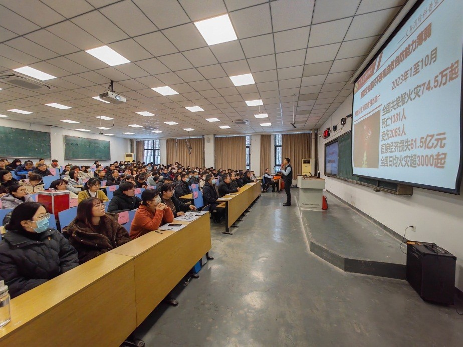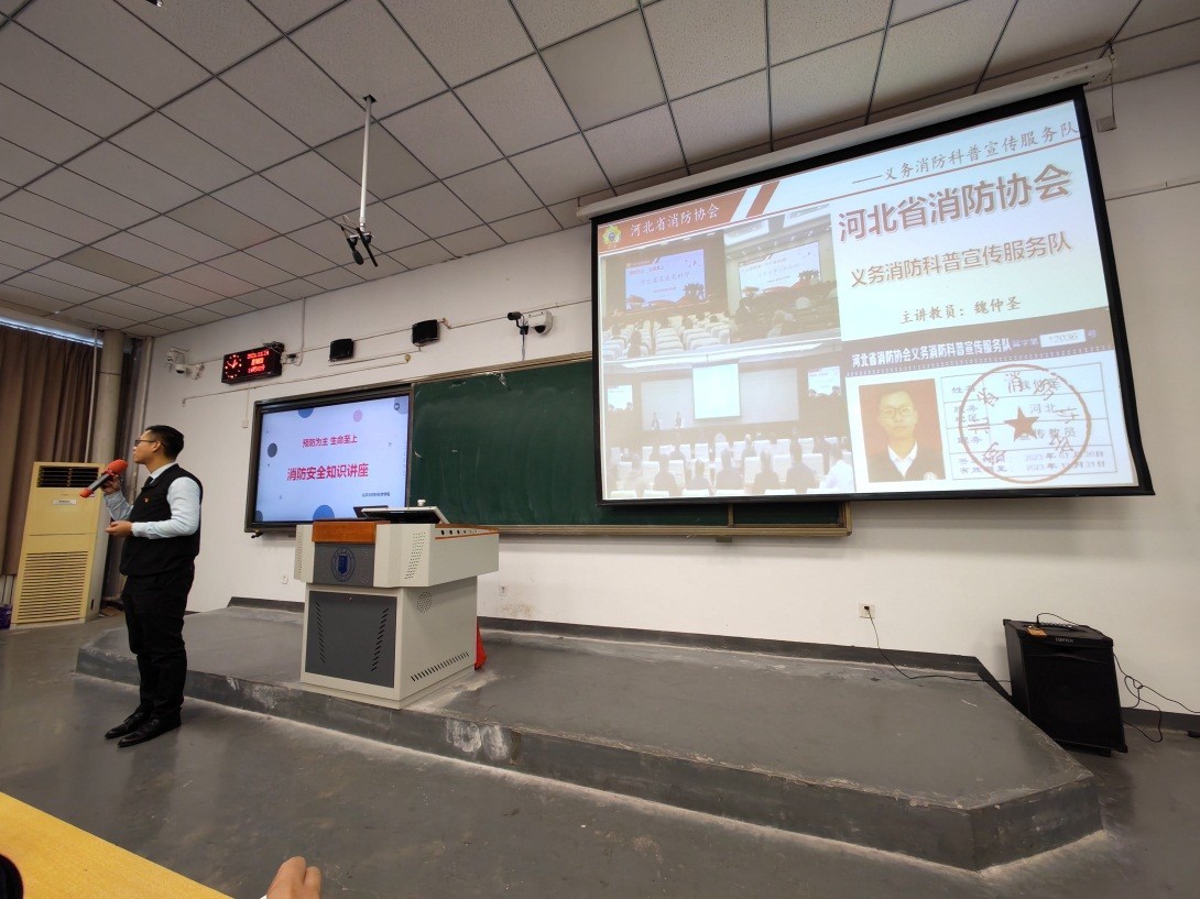 为加强银河welcome娱乐网站师生消防安全教育,增强师生消防安全意识,使广大师生掌握一定的消防安全知识和技能,提高火灾防范意识和应急处理能力,12月14日下午14:00,学院邀请河北省消防协会义务消防科普宣传服务队魏仲圣教官一行,在学校公教楼A104教室,给全体师生开展了一场消防安全教育。