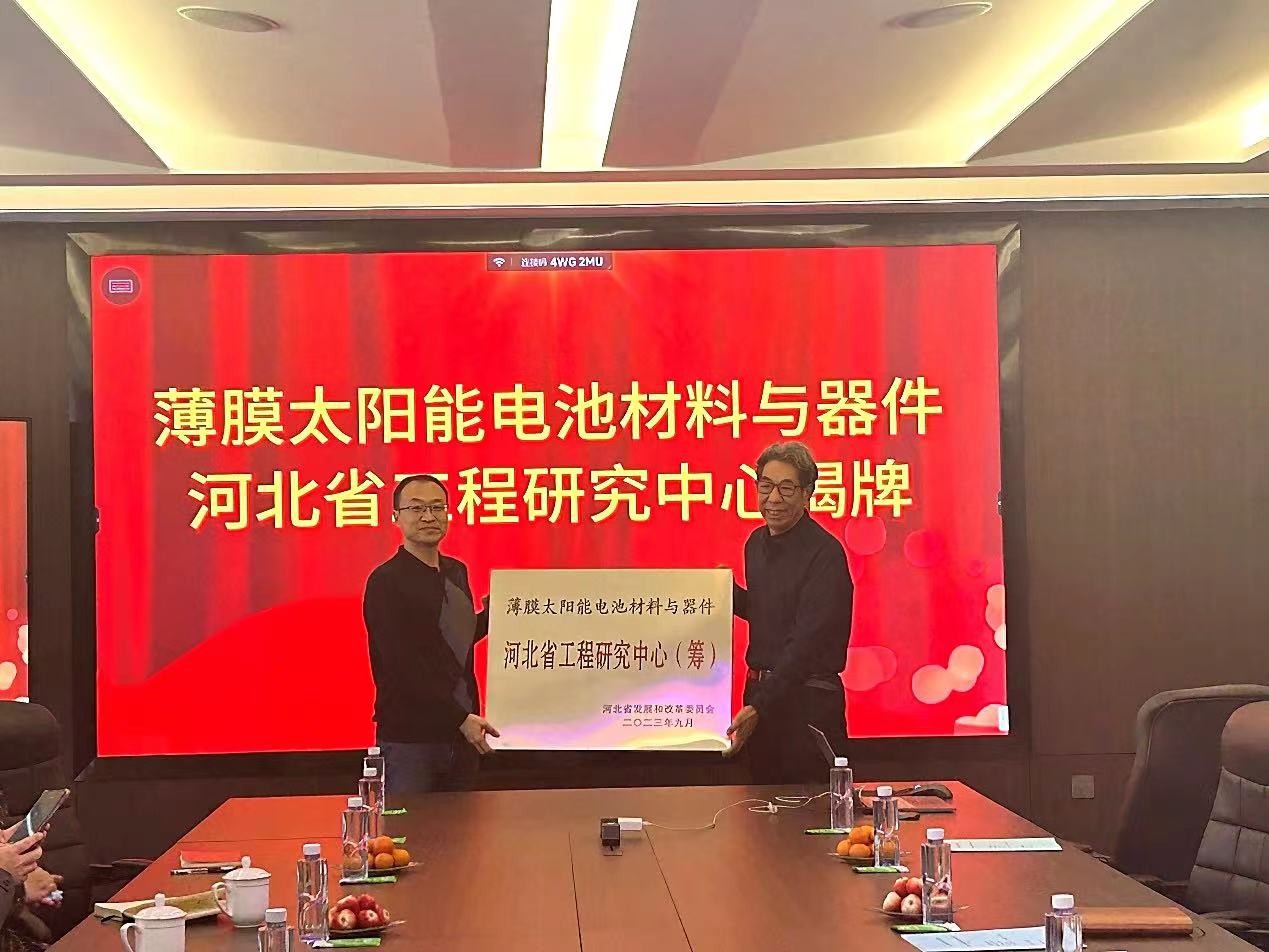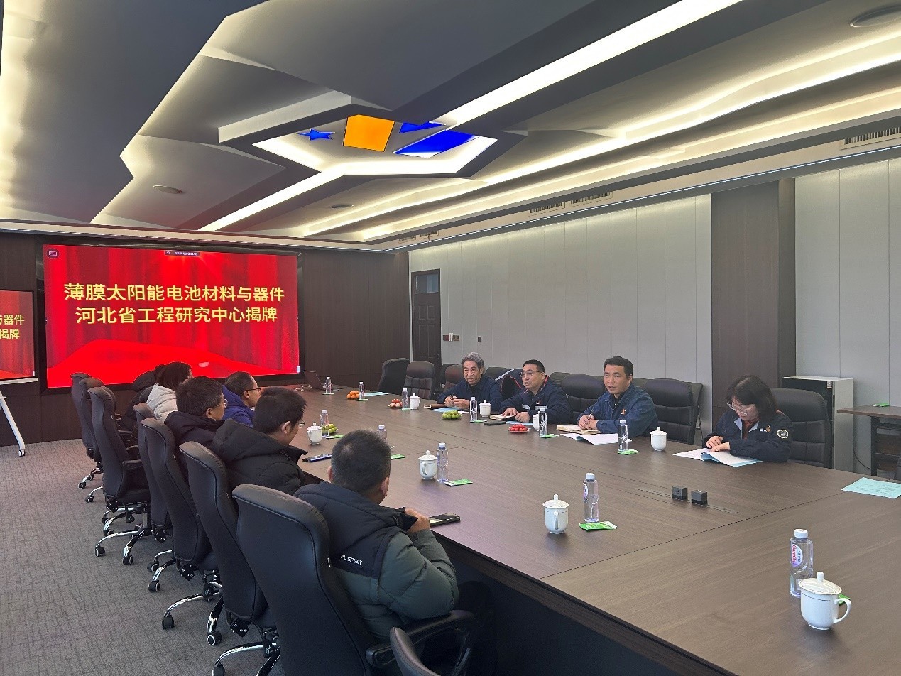 12月20日上午,银河集团官网领导班子成员以及工程研究中心管委会成员一行9人,前往龙星化工股份有限公司座谈并举行薄膜太阳能电池材料与器件河北省工程研究中心(筹)挂牌仪式。龙星化工股份有限公司副总经理马宝亮等企业领导参加座谈。院长刘博和马宝亮副总经理共同为薄膜太阳能电池材料与器件河北省工程研究中心共建单位揭牌,标志着龙星化工正式成为工程研究中心共建单位。