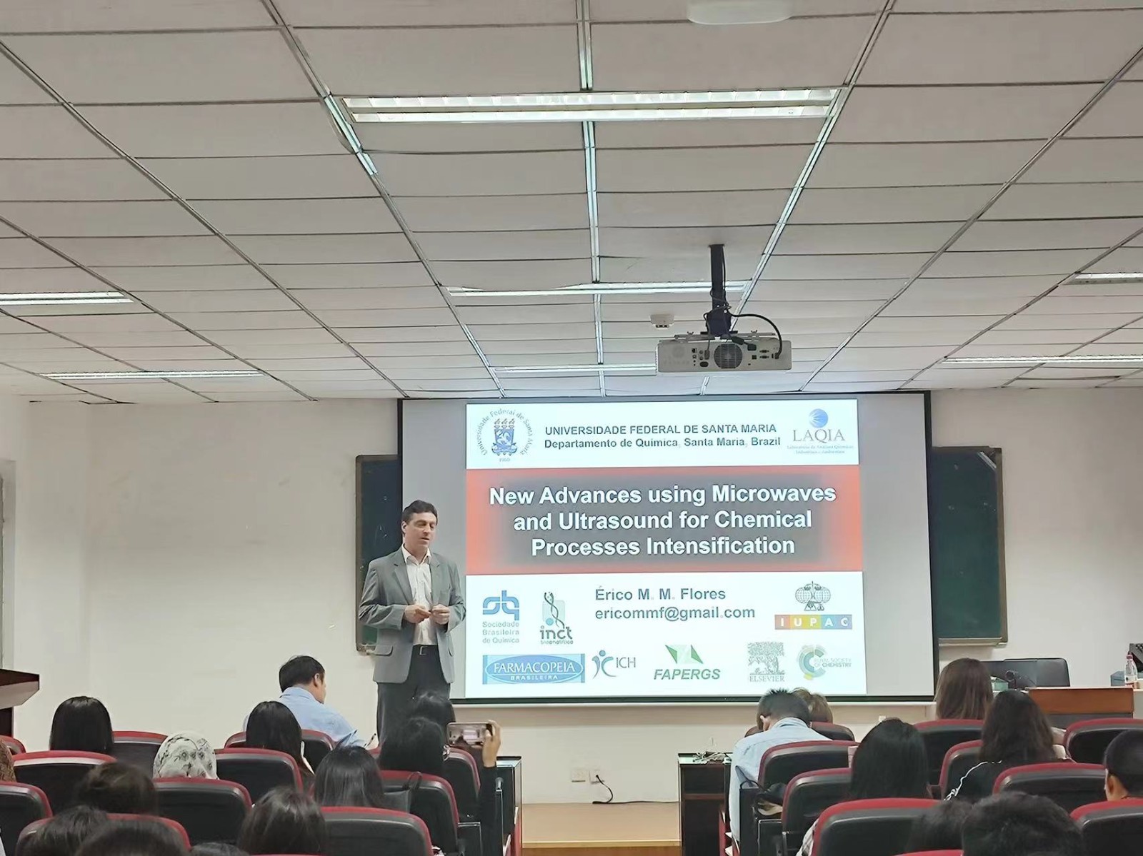 此外,两位老师还介绍了巴西佩洛塔斯联邦大学和巴西圣玛丽亚联邦大学的校园氛围和文化,并欢迎同学们有机会到这两所大学进行学术交流。同学们从巴西佩洛塔斯联邦大学研究与研究生院院长MárciaFoster Mesko和巴西圣玛丽亚联邦大学教授ÉricoM. M. Flores的精彩分享中,深入了解了超声波和微波在化学过程中的应用与前沿进展。在报告交流环节中,多位教师和研究生与这两位老师进行了深入互动讨论,会场学术氛围浓烈,讨论充分,取得了良好的交流效果。