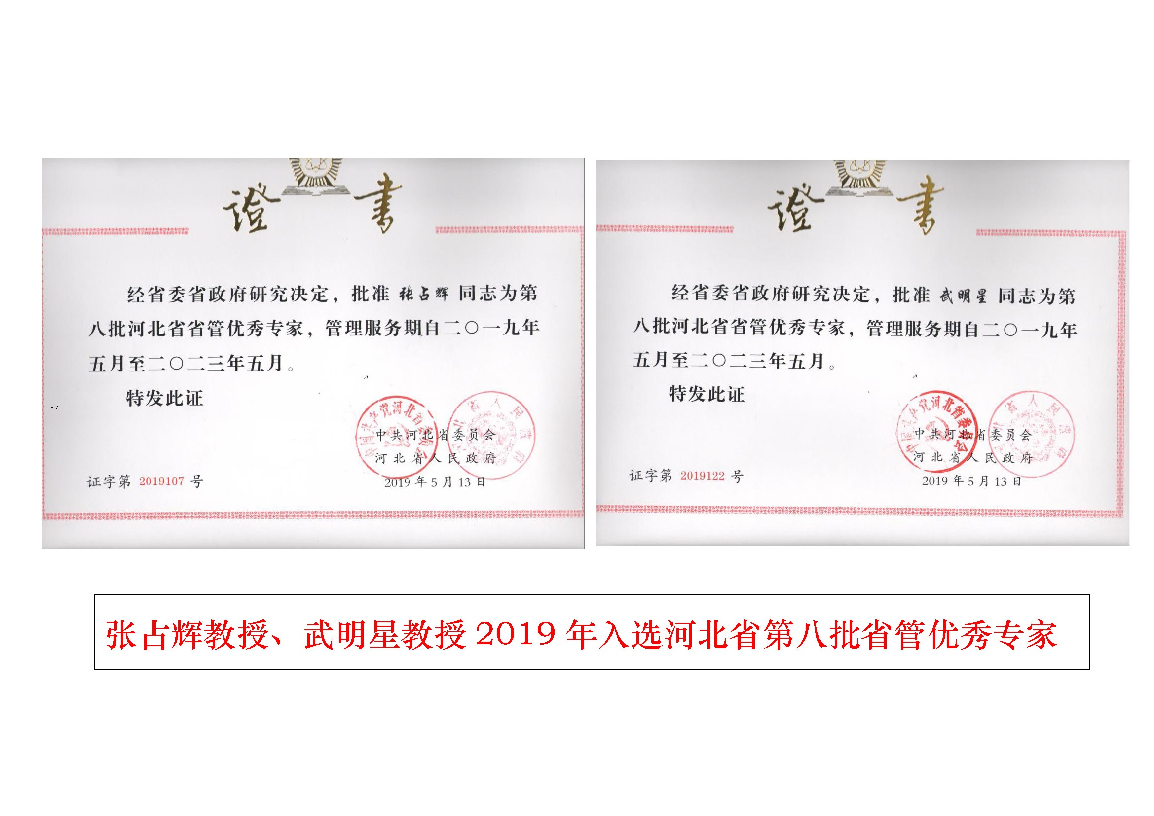 银河welcome娱乐网站张占辉教授、武明星教授入选河北省第八批省管优秀专家