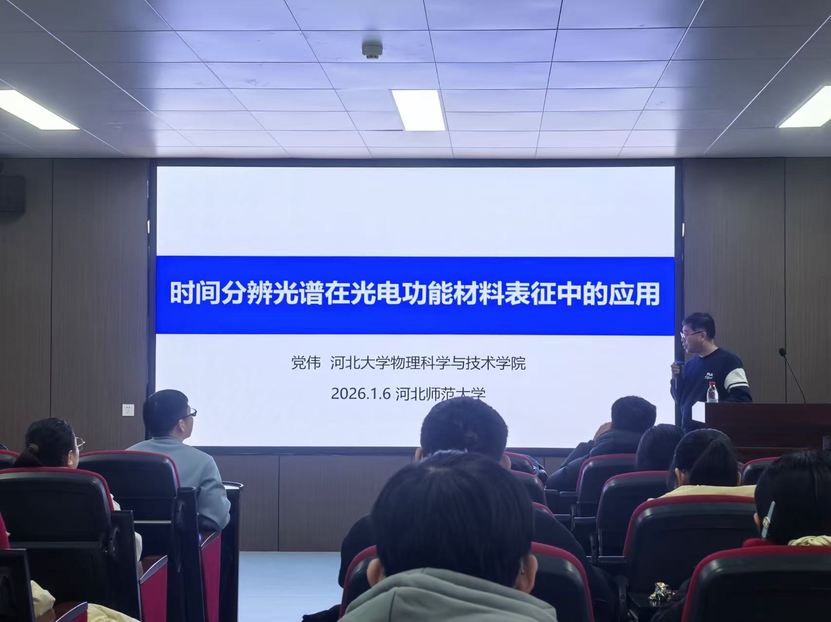2026年1月6日上午,银河集团官网特邀河北大学党伟副教授,于化学楼C118举办了一场题为“时间分辨光谱在光电功能材料表征中的应用”的精彩学术报告。学院教师以及研究生、本科生代表共同参与了此次报告会。